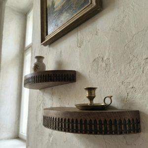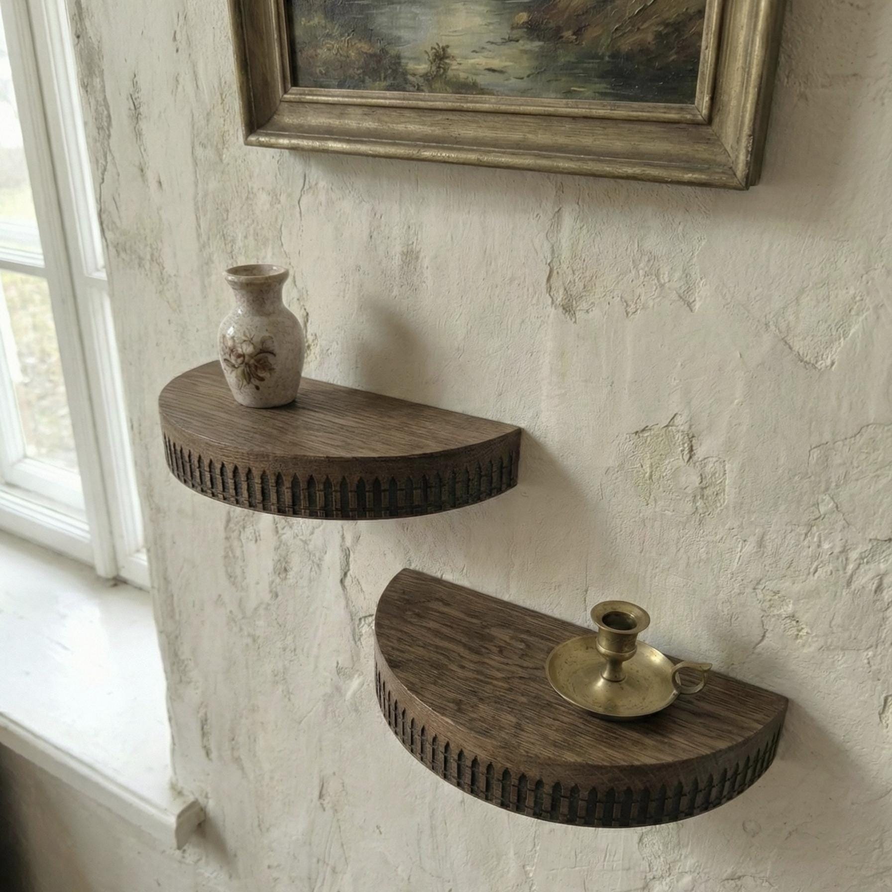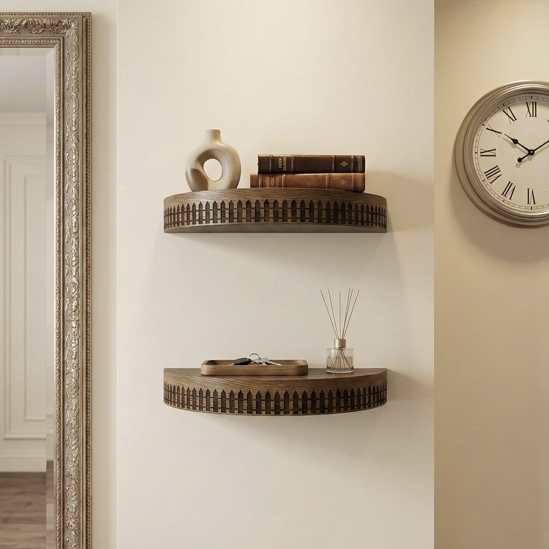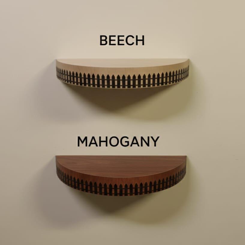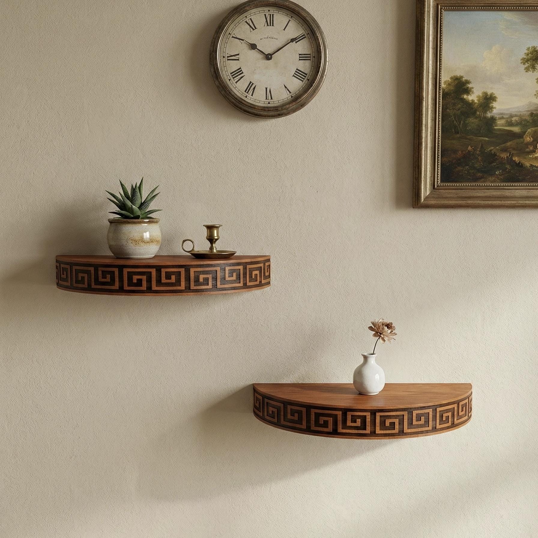 Half Moon Floating Wall Shelf | Semicircle Wood Shelf | Geometric Mosaic / Greek Key / Picket Fence Edge