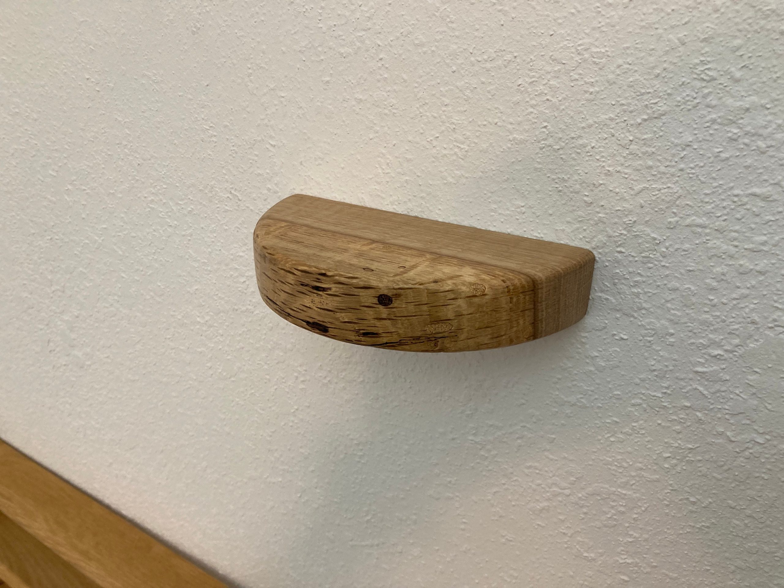 These wooden shelves sit flush on the wall and can be installed in less than 5 minutes and are still very sturdy.
