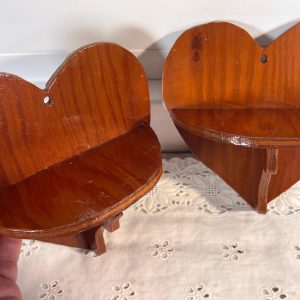 Vintage Handmade Heart Wooden Mini Shelf Trinket Boho Cottagecore Rustic 9.75×4